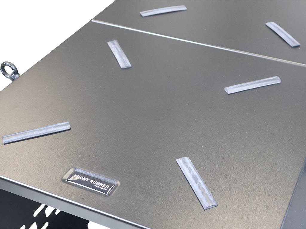 A Fridge Slide and Cage Combo / Medium that create a complete protective cove around your FRID213 or FRID206*. This Fridge Slide and Cage Combo ensures packed cargo remains in place and free from the rear of the fridge slide when sliding the fridge out. Mountable to any flat surface, such as the rear loading area of a SUV or pickup truck beds. The Fridge Cage has 3 (three) adjustable height settings to accommodate various makes of fridges. The Fridge Cage, when assembled on the lowest height setting, accommodates the full operations of the FRID213 or FRID206*. The Fridge Cage is designed with Molle pattern sides to mount smaller items directly onto the fridge cage. Includes 2 (two) sets of RRAC012 at the top of the fridge cage to strap down cargo, such as 2 (two) Wolf Pack Pro boxes with STRA034*. The slide-out extension gives you an additional 470mm/18.5'' x 325mm/12.8'' work surface and extend nearly 100% from the anchored base. Slide mounting holes are predrilled. The Fridge Slide features a hold open mechanism to prevent the slider from closing when the vehicle is parked on uneven surfaces. A latching arm securely locks the sliding drawer in the closed position. Finished in the same durable weather-resistant black powder coating as the Front Runner Dometic Roof Racks. Four (4) STRA063 are included to secure your fridge to the fridge slide. Mounting hardware included for wood and metal surfaces.Note: The Fridge and Stratchits are not included when purchasing the Fridge Slide and Cage Combo / Medium. These products are sold separately.