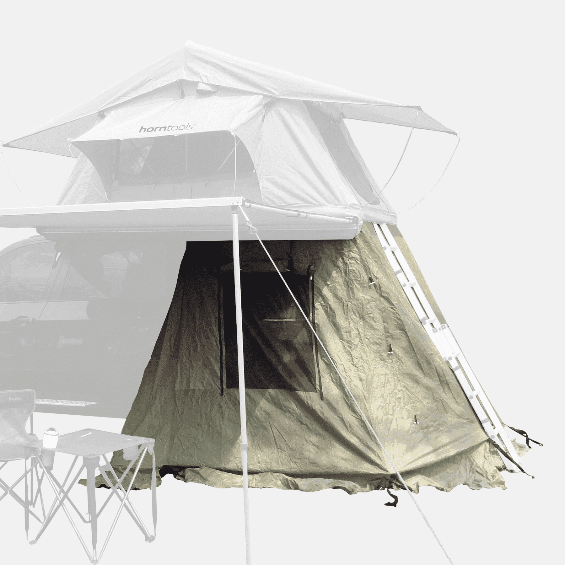Das Vorzelt wird mittels Reißverschluss an deinem Trapper Joe Zelt befestigt. Rundum ist das Vorzelt mit Moskitonetzen ausgestattet.. Durch das Vorzelt schaffst du einen zusätzlichen, windgeschützten Raum, der dir viel extra Platz bietet auf deiner Reise.