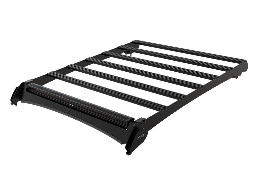This low-profile flat deck Slimsport rack has a load carrying area of 1272mm (50'') L x 1166mm (45.9'') W. The sleek side rails have integrated mounting feet. The mounting feet also have additional brace brackets for added strength. The high-strength aluminum slats have T-slots suitable for all Front Runner Dometic top mount accessories. Easily add on the RRAC182 for most Front Runner Dometic side mount accessories (sold separately). The included 40'' Light Bar wind fairing with rubber edge trim, makes the rack ultra-quiet. Included is the LIGH213. Fitment guide and all mounting hardware included. Note: Drilling required for installation. No drilling is required for Wildtrak models. Note: Under Rack Tables and some side mount accessories such as JADA010 and RRAC103 are not compatible with the Slimsport Tray range. All Front Runner Dometic Racks are backed by a Limited Lifetime Warranty*
