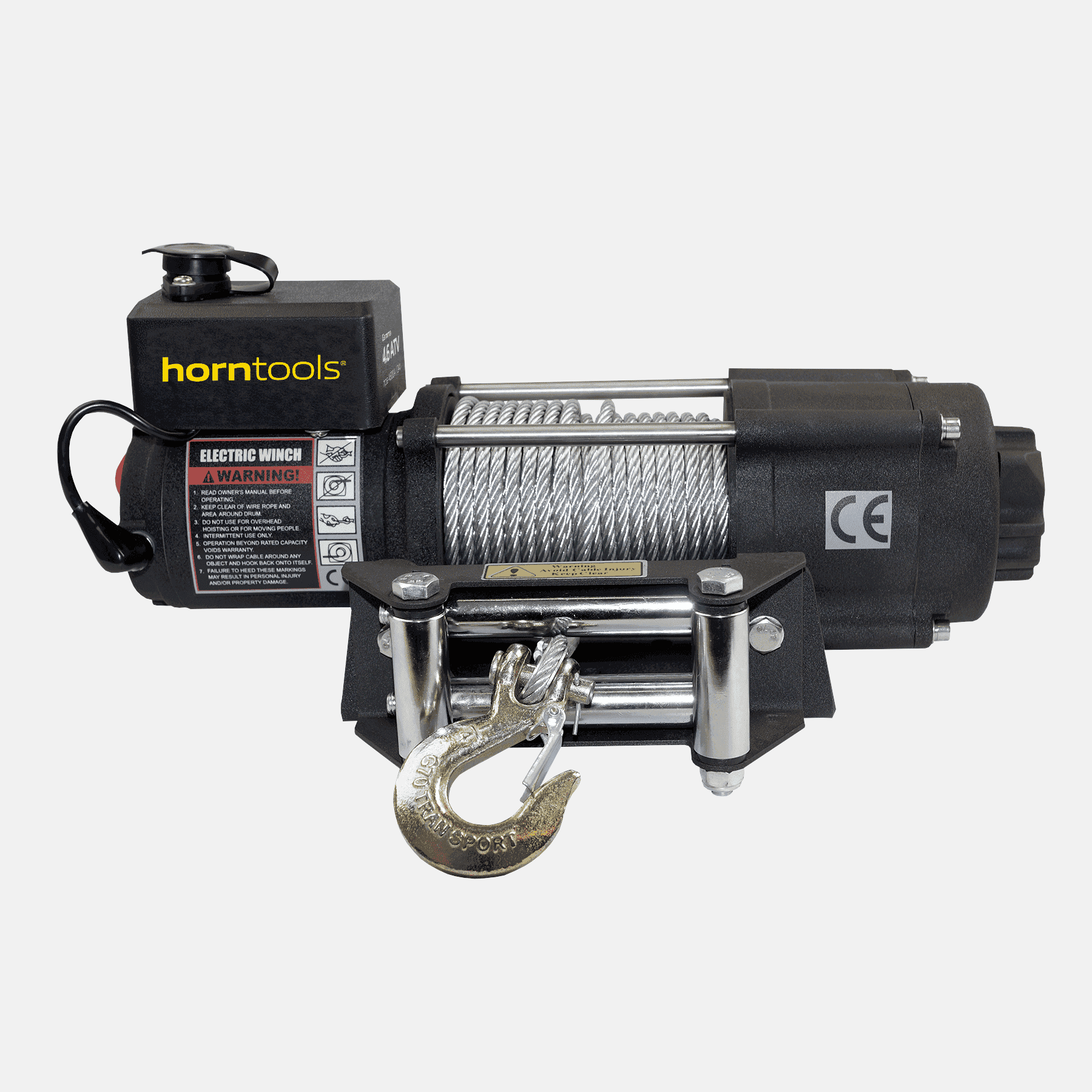 Elektrische Seilwinde Gamma 4.6. Die ideale elektrische Seilwinde für dein Quad, ATV oder ein anderes Kleinfahrzeug. Trotz ihrer kompakten Größe erzeugt die horntools Seilwinde Gamma 2,0 eine Zugkraft von 2 Tonnen und ist damit gut geeignet, um z.B. Quads zu ziehen.Neben der mitgelieferten Kabelfernbedienung kann diese Winde auch mit einerFunkfernbedienung erweitert werden.. Eigenschaften:. Elektrische Seilwinde. Freilaufhebel. Querstreben aus Edelstahl. Verstärkte Seiltrommel. Pulverbeschichtetes Aluminium Druckgussgehäuse Motor/ Getriebe. Bremse. Abnehmbare Steuereinheit (damit die Steuerung beliebig verbaut werden kann). Lieferumfang:. Seilwinde. Rollenseilfenster. Montageplatte. Befestigungsschrauben. Stahlseil mit Haken. Kabelfernbedienung (2,5 m Kabellänge). Bedienungsanleitung. Achtung:. Bitte beachte, dass unsere Seilwinden ausschließlich für den Bodenzug verwendet werden dürfen und nicht zum Heben geeignet sind!. Die Bedienungsanleitung der Seilwinde ist vor der Benutzung vollständigdurchzulesen und muss strikt befolgt werden, da ansonsten Verletzungsgefahrdroht!. Garantie:. Wir gewähren unter Einhaltung der Garantie- und Servicebestimmungen eine Garantie von 5 Jahren auf Getriebe und Trommel der Seilwinde. Bitte fülle dafür unseren Garantieantrag in unserem Benutzerhandbuch aus und sende diesen per E-Mail an uns zurück. Die Garantie gilt nur für Privatanwender, nicht für den gewerblichen Gebrauchund nur unter Beachtung der Bedienungsanleitung.. Hinweis:. In der Bedienungsanleitung und bei deinem Fachhändler bekommst Du alle wichtigen Infos über die Handhabung deiner neuen Seilwinde. Bei dieser Winde kann es zu einer höheren Geräuschentwicklung kommen.